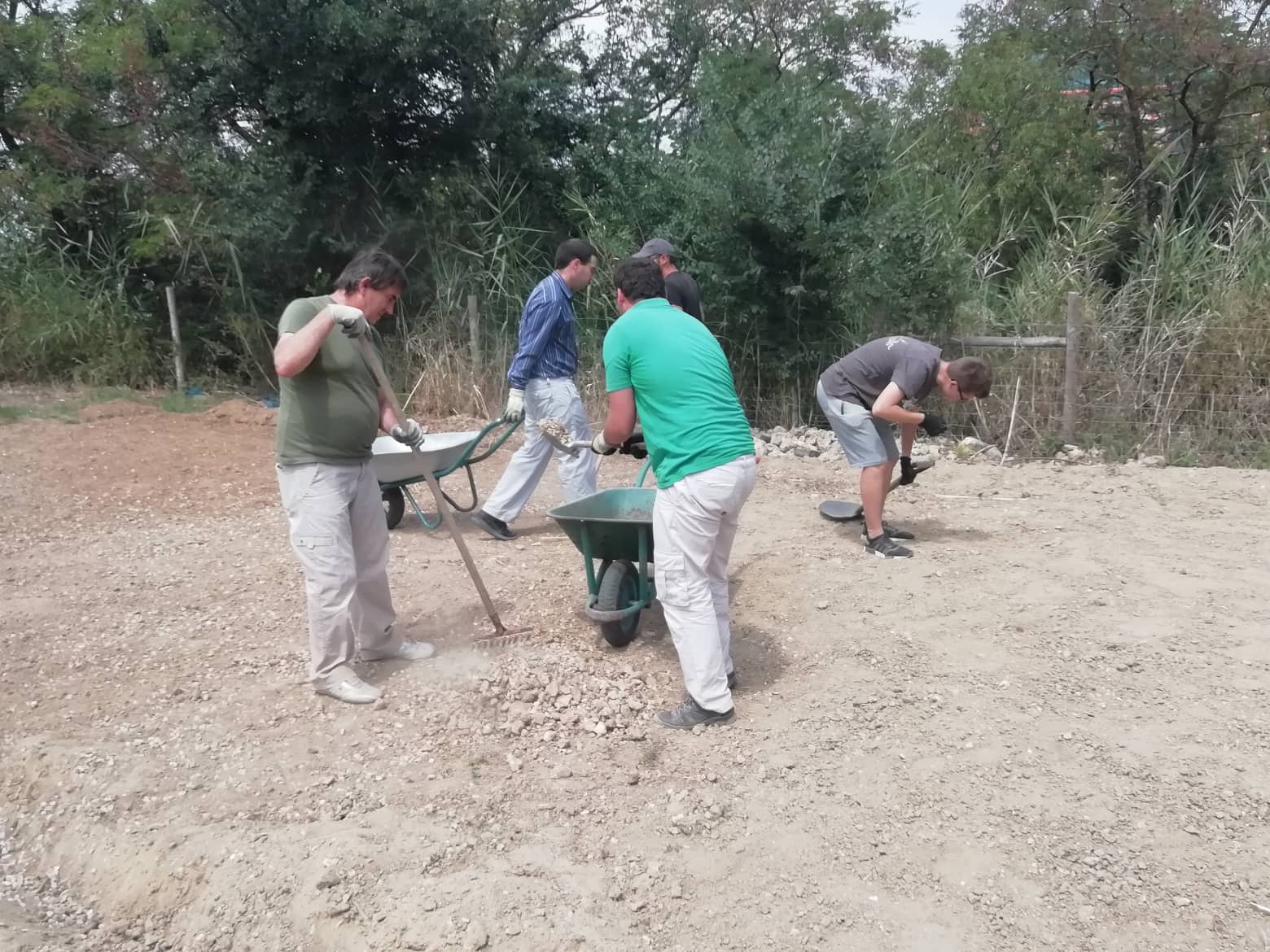 Com os jovens, voluntários e com a coordenação do monitor de Jardinagem o nivelamento do solo está feito e a implantação do sistema de rega já está em marcha. Tudo a andar a bom ritmo para o treino, passo a passo, para a criação deste novo espaço na Casa Grande.